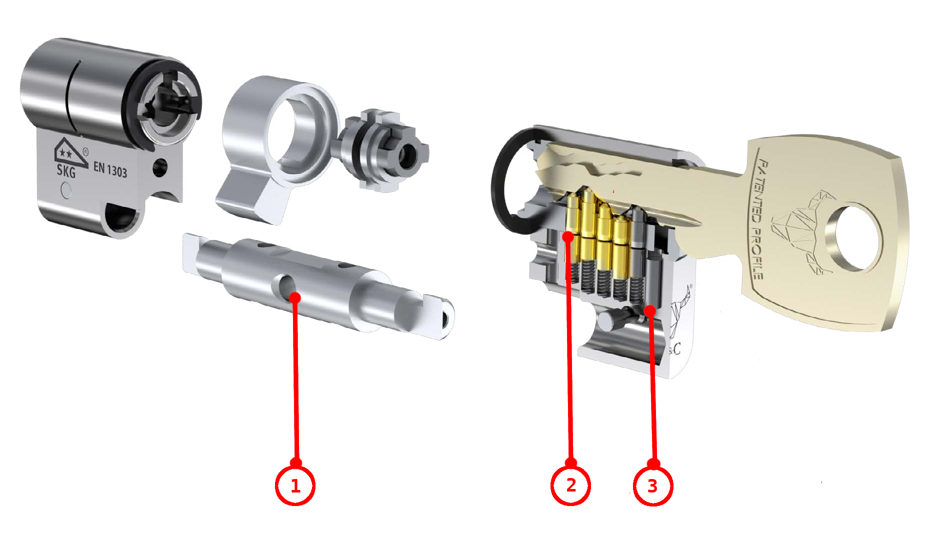 M&C MATRIX** – tai vidutinio saugumo lygio M&C cilindras. Jis turi SKG** sertifikatą, taip pat yra sertifikutas paga EN-1303 ir DIN-18252. Skirtas įėjimo durims ir meistro raktų sistemoms, kur nereikia aukšto saugumo.